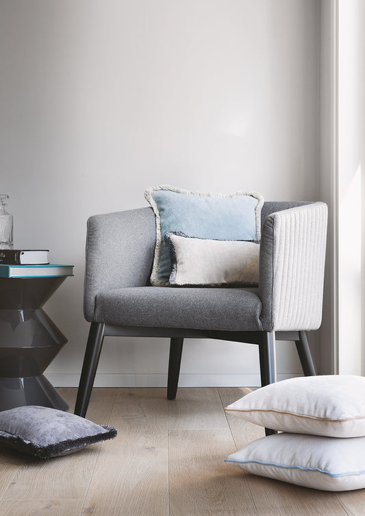 HAPPY PILLOW | Velvet Cushion DIRTY WHITE & LIGHT BLUE