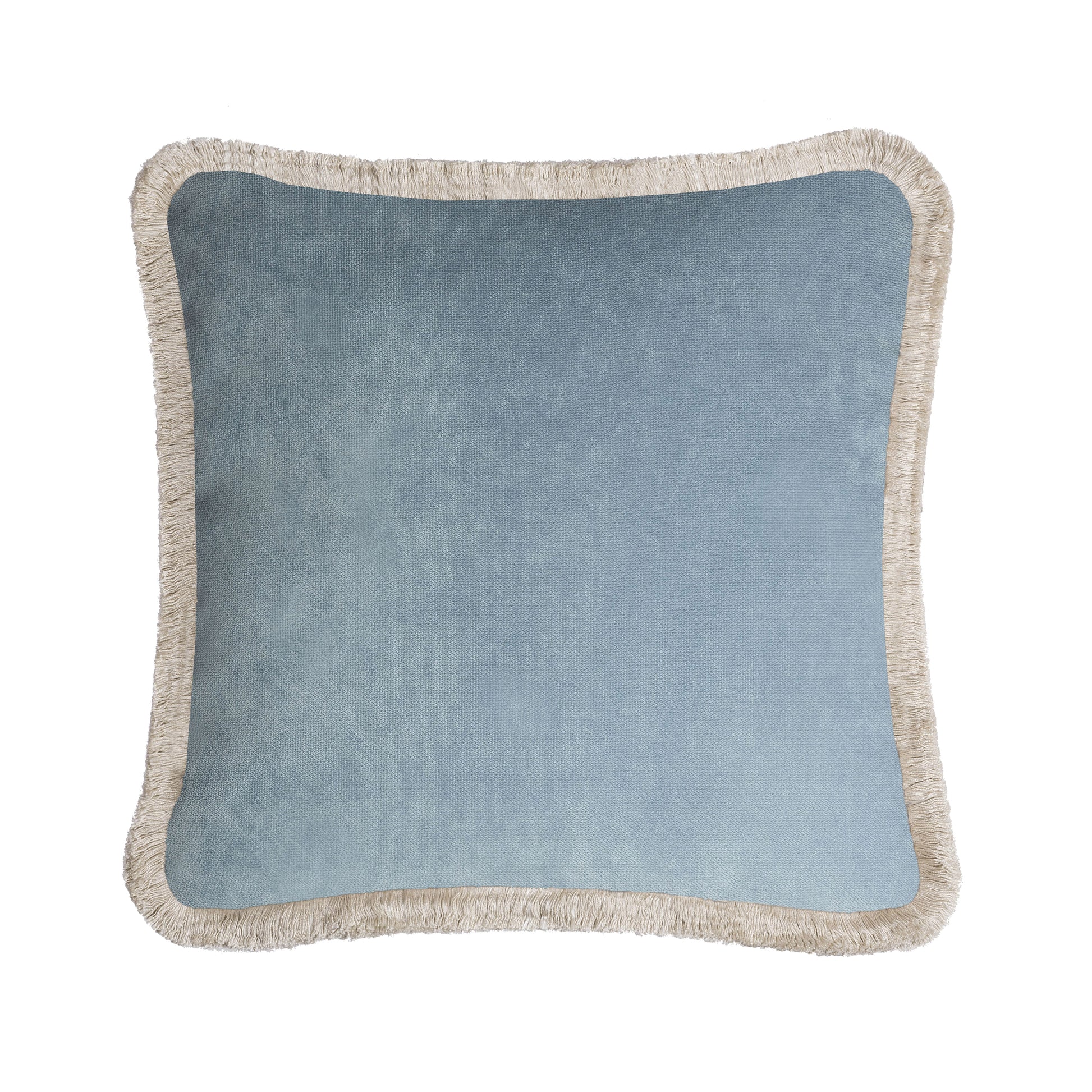 HAPPY PILLOW | Velvet Cushion LIGHT BLUE & DIRTY WHITE