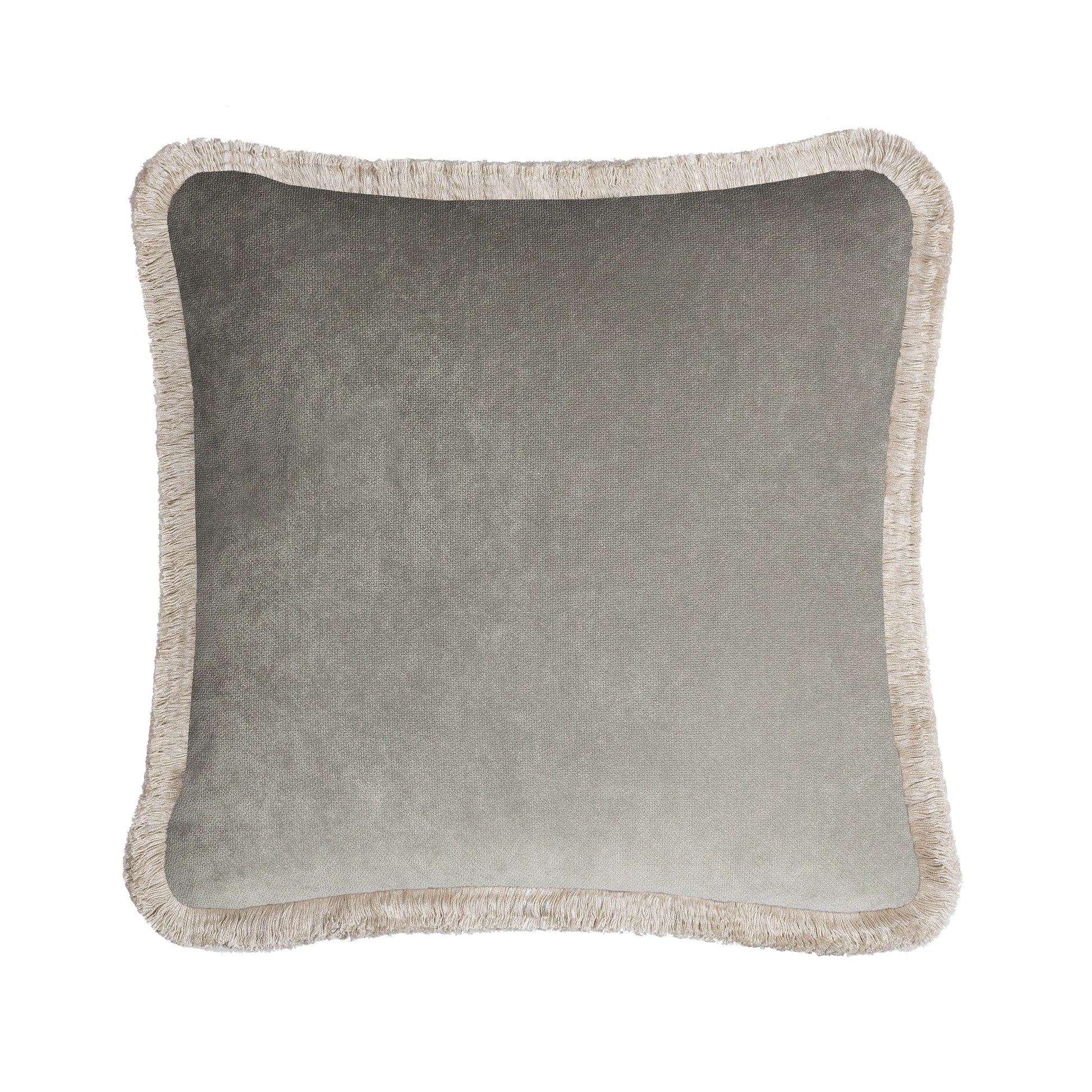 Velvet cushion whit fringes. Elegant, timeless, and refined. This square cushion is meticulously handcrafted in Italy using premium velvet, a high-performance fabric with a smooth and luminous finish. A delicate viscose fringe frames the edges, adding a sophisticated decorative detail with understated charm.
