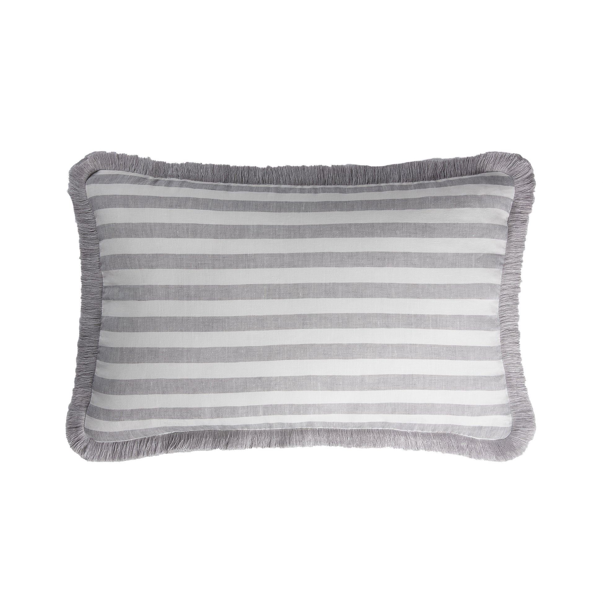 This cushion is the perfect accent piece for an easy style update, it makes a chic accent for any well-decorated home, adding charm to a bed, sofa, or armchair. Crafted of pure Italian linen, refined with cotton fringes, LO Decor Linen collection is available in both plain and striped colors both with its delicate hues and details with understated glamour. Warm colors, exquisite craftsmanship, and elegant materials are the hallmarks of these cushions. Removable cover, dry wash.